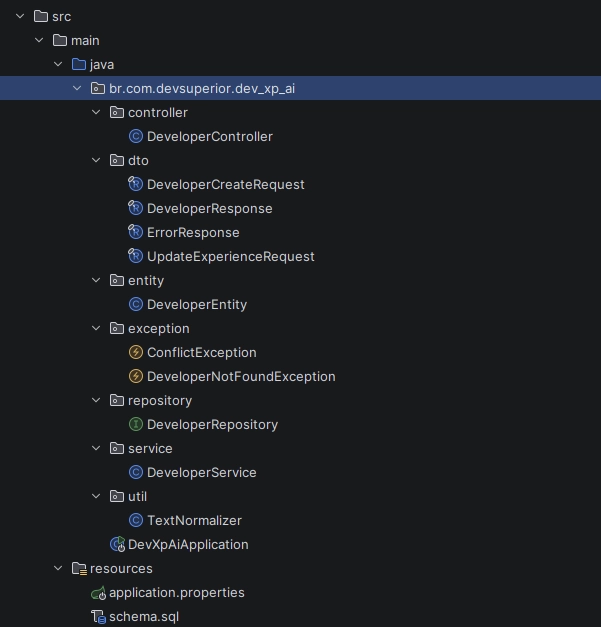 Nossa aplicação se chama dev-xp-ai.